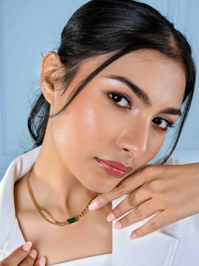 Expertly crafted with a stunning Green Emerald pendant on a Gold chain, this necklace is bound to elevate any outfit. The brilliant Emerald is known for its calming and balancing properties, making it a perfect accessory for any occasion. A timeless piece for those with refined taste.